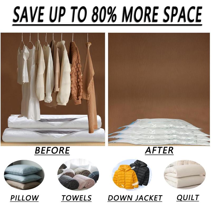 【Durable Protection】: Storage bags using a vacuum seal so you’re removing all of the excess space taken up by the air, not easy to leak and change its character;Vacuum Storage bags for clothes can be reused from season to season, thus maintaining their cleanliness over the time they are stored.